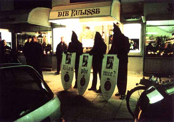 31. Dezember 1998 Blasphemie Die Guglmänner SM. König Ludwig II. sind über dieses Stück aufs tiefste beunruhigt. Gibt es für unseren König denn keine Ruhe? Wann hat diese unerträgliche Geschichts-(Ver)Fälschung ein Ende? Hat unser König das verdient? Warum muß ein Mensch wie König Ludwig II. fortwährend in Klischeedarstellungen gepreßt werden. (Kini, Märchenkönig, Wiggerl, der närrische König, der Einsame, der Verschwender, der Selbstmörder, der Geisteskranke, der Schwächling, der Unglückliche). Keines dieser Attribute entspricht der Wahrheit. Die moderne Ludwigforschung zeigt den König in einem völlig anderen Licht. Viel „Vergüngen“ mit einem Stück, das davon lebt, die erhabenste, liebenswürdigste, freigiebigste, gebildetste und genialste Persönlichkeit, die Bayern hervorgebracht hat, in den Sumpf des Trivialen hinabzuziehen. Dieser Mensch hat für Kunst und Kultur mehr getan als all die Meister der seichten Unterhaltung zusammen; er hat das Genie Richard Wagner gerettet. Unter dem Deckmäntelchen der Freiheit der Kunst soll hier mit einer seichten, trivialen und dümmlichen Masche Ludwig einmal mehr als Witzfigur gezeichnet werden. Ringsgwandl als Märchenkönig-Clown, Schloß Nymphenburg als heruntergekommenes Prärie-Puff und van Gogh als farbenblinder Maler - dieses Stück ist mehr als ein Zerrspiegel der Wirklichkeit. Wir appellieren an alle Menschen guten Willens: betrachten Sie dieses Stück kritisch, dulden Sie keine Verächtlichmachung des Bayernherrschers. Helfen sie mit, das Andenken und Vermächtnis unseres Königs in Ehren zu bewahren und es nicht durch geistlos-dümmliche Darstellung besudeln zu lassen. Ein Arzt war es, der den König (ohne ihn je untersucht zu haben) für geisteskrank erklärte und so - bewußt oder unbewußt seinen Tod verursachte. Heute ist es wieder ein Arzt, der - da der König tot ist, genügt ihm noch nicht - auch noch das Andenken des Königs zerstören muß. Zufall oder wohlkalkulierte Absicht? Für jeden ehrlichen Bayern - aber auch für edel gesinnte Preußen - stellt sich die Frage: ist dieses Stück Blasphemie?