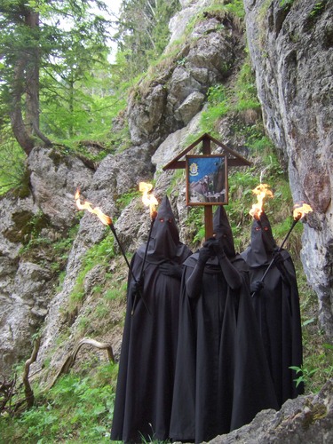 Osterauers historischer Bericht wird voll bestätigt: „Der Weg war schmal, ich mußte hinter ihm gehen. Links von uns waren Felswände, rechts der Abgrund.“ An dieser unheimlichen Stelle kann man sich selbst heute - vor allem nachts - eines heiligen Schauderns kaum erwehren.
